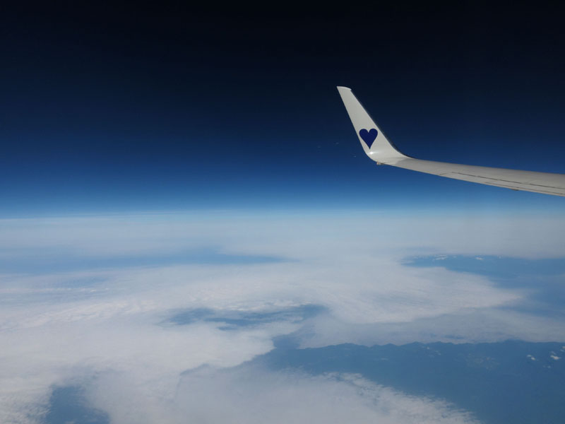 あとは雲上飛行となるが、巡航高度のすぐ下に雲があったため、