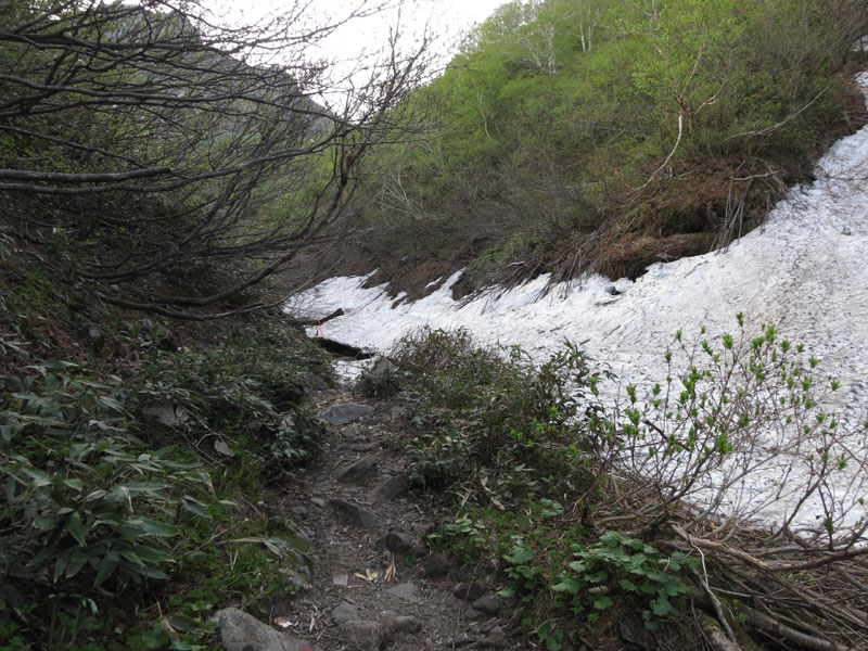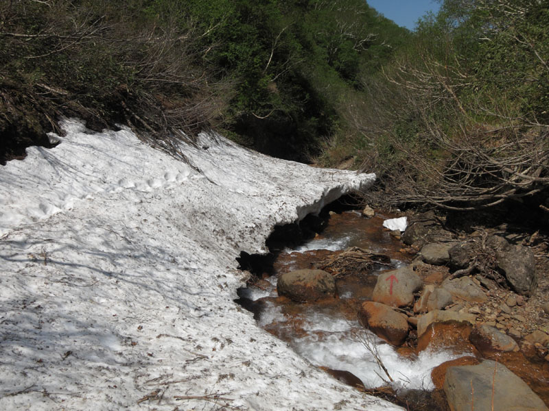 ネットの報告だと、残雪の渡渉で苦労して往復9時間掛かったとか、