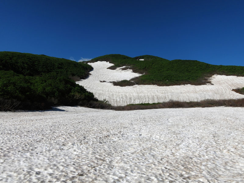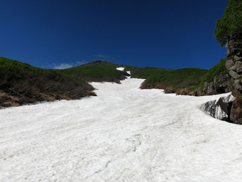 登山道は結局8割くらいは雪渓上で、これでは完全に雪山登山だ。