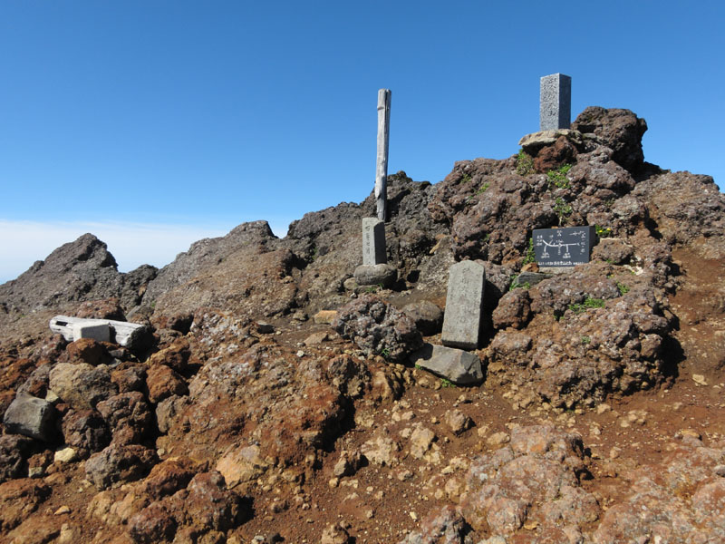 山の標高としては隣の岩盤の1917mだが、三角点の標高は1913mあまりとなる。