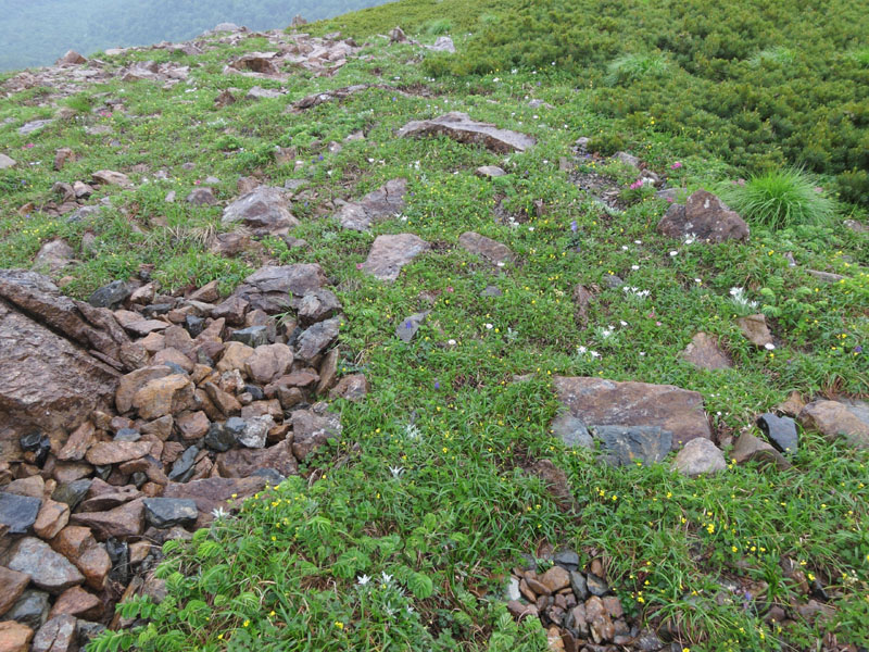 蛇紋岩質の地形なので、ここにしか咲かない高山植物が多いとか。