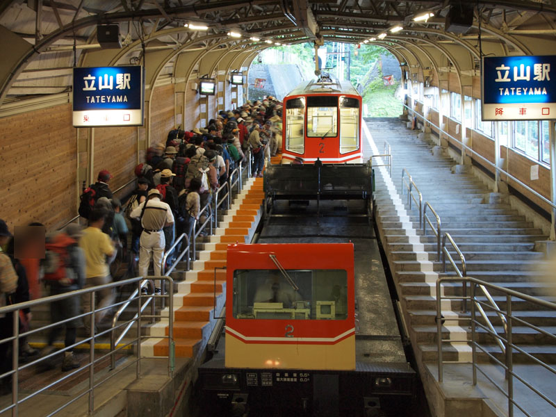 ここからはマイカー規制が敷かれているため、ケーブルカーとバスを乗り継いで移動。