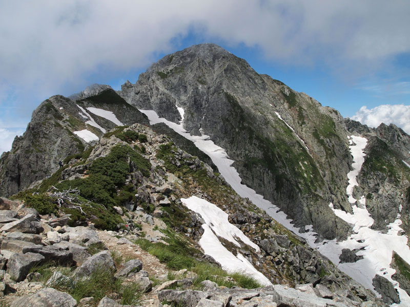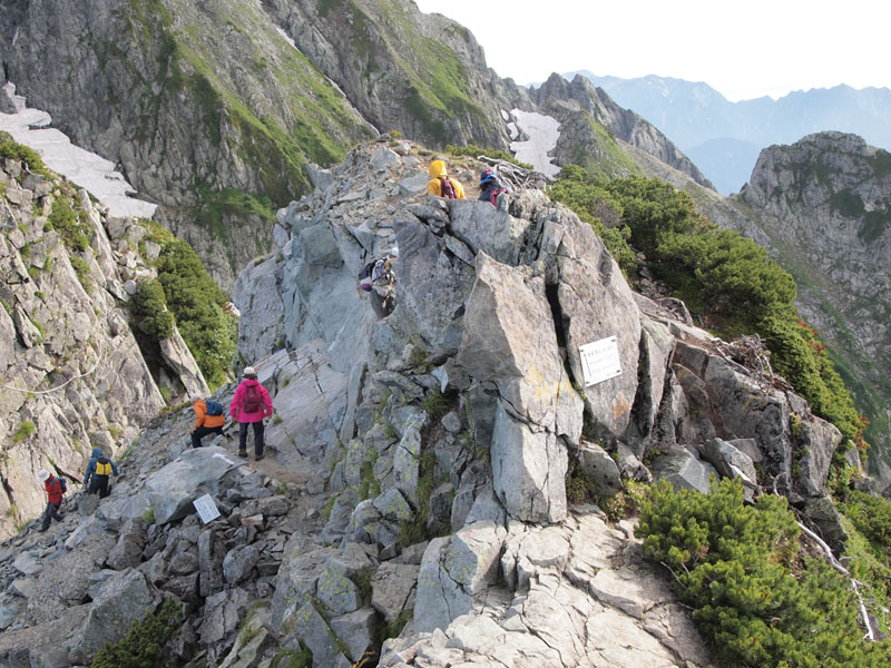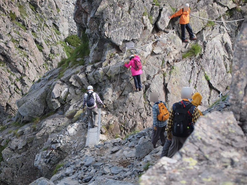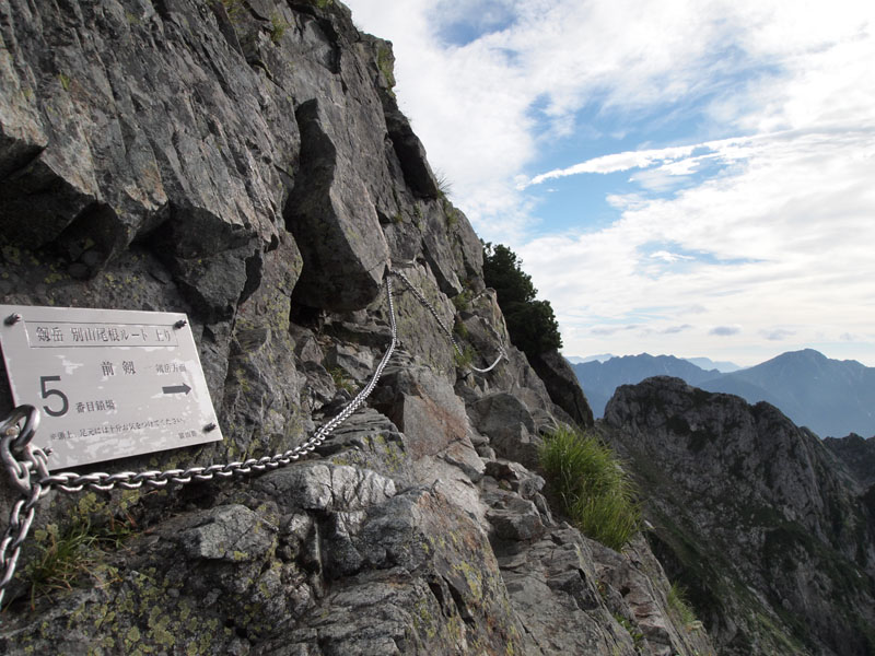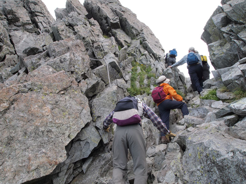 岩場の難易度は、別山尾根よりは低いし、