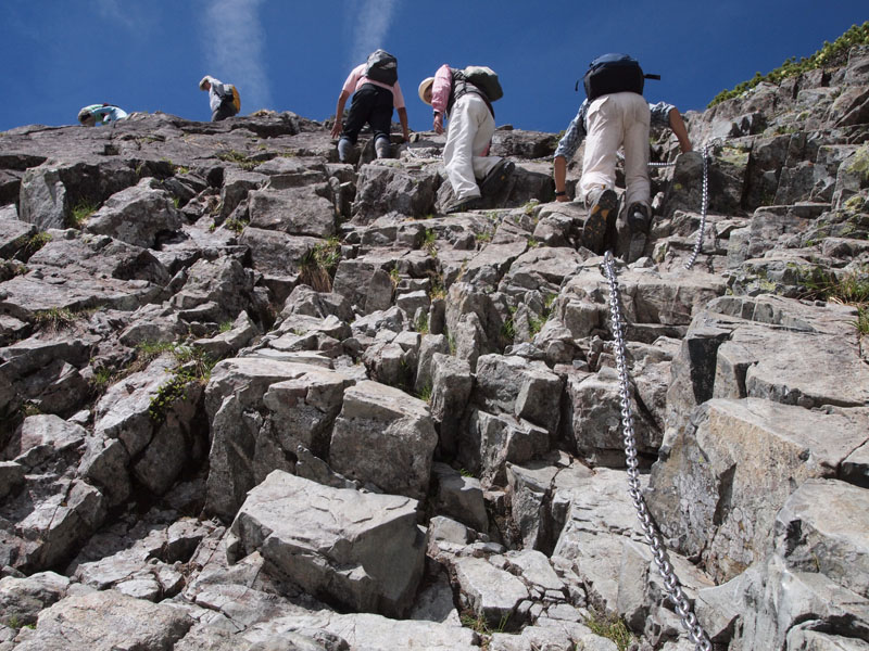 さすがに赤岳はロープを使用するパーティも多いレベルだ。