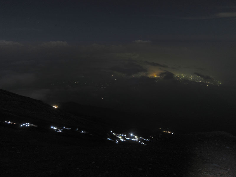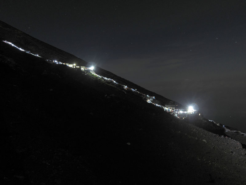 夜22時の時点で、登山道に登山者の明りが連なっているのが確認できた。