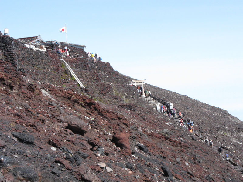 8〜9合目あたりで路肩でヘバっている観光客の人を大量に見る。