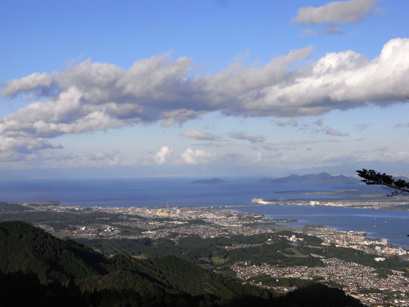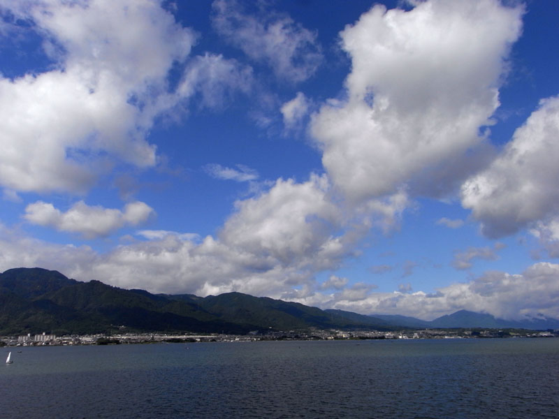 琵琶湖には隣接して比叡山と、比良山地がある。左にあるのがそれ。