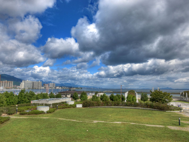 ケーブルカーの駅からは琵琶湖の南部が一望できる。
