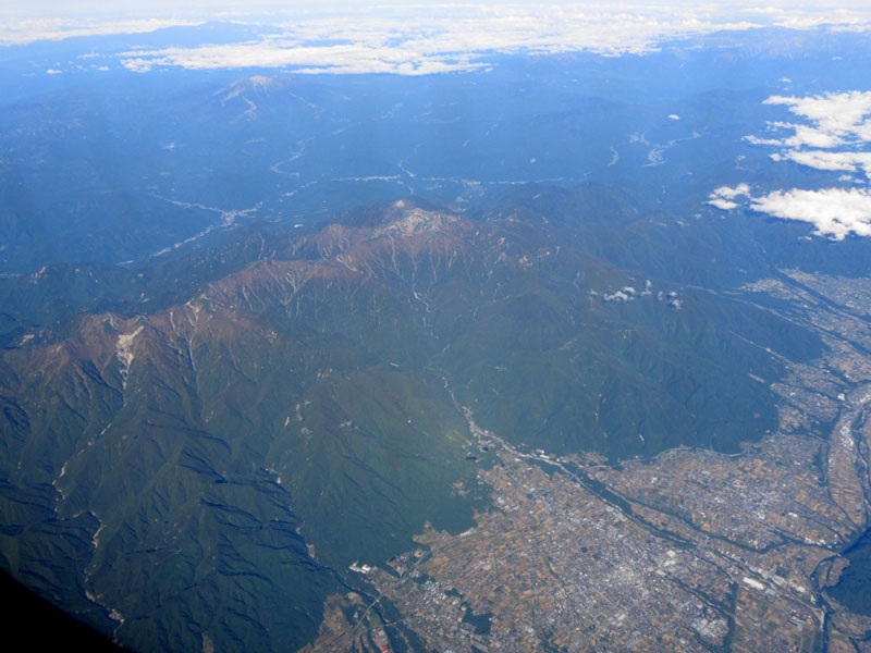 伊那谷からは標高差2300mを以って立ち上がり、飛行機から見ると結構立派だよな。