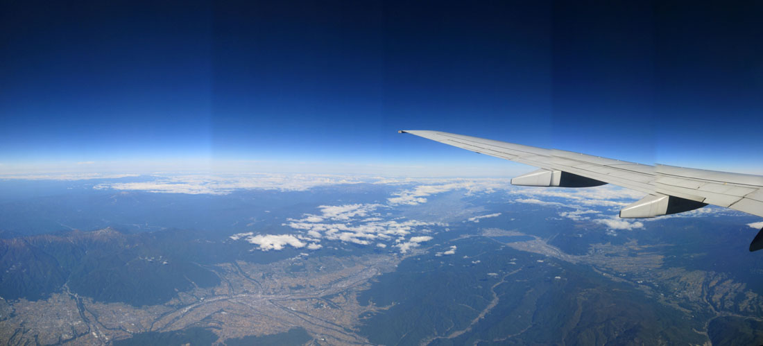 パノラマ写真にすると、まさに日本地図の上を飛んでいる感じ。
