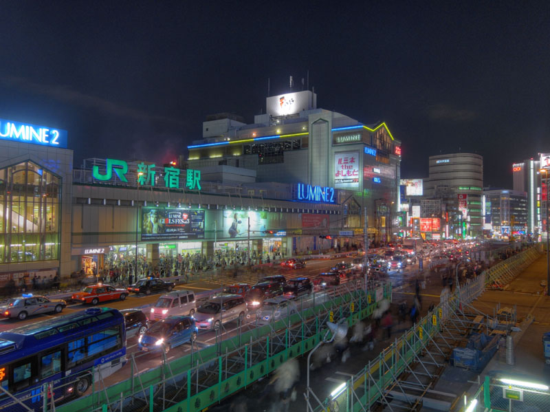 深夜の新宿、HDR撮影だと怪しく輝くネオン。