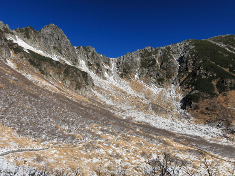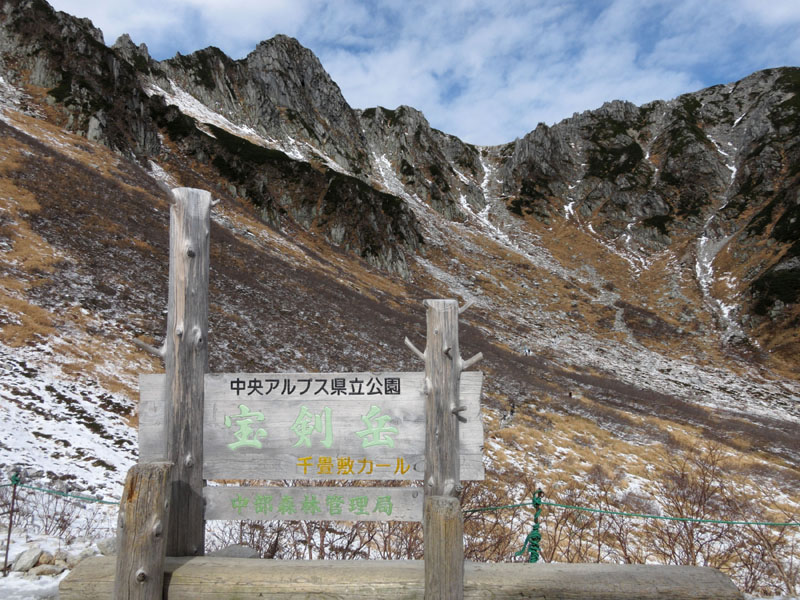 千畳敷に着くと一面の銀世界、というわけでもなく雪が多少ある程度で晩秋の雰囲気。