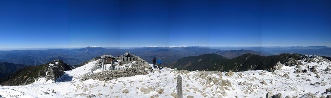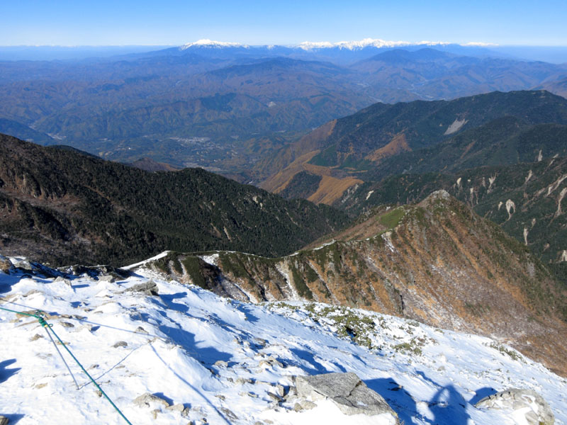 北アルプスはもう真っ白になっており完全に冬山といった感じ。