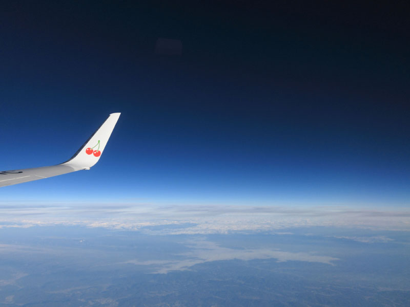 離陸すると遠くまで澄み渡った空が広がる。