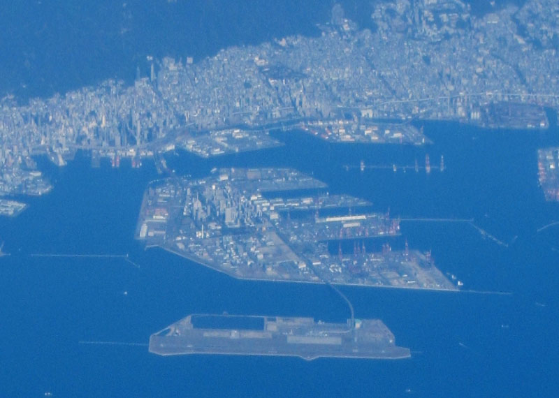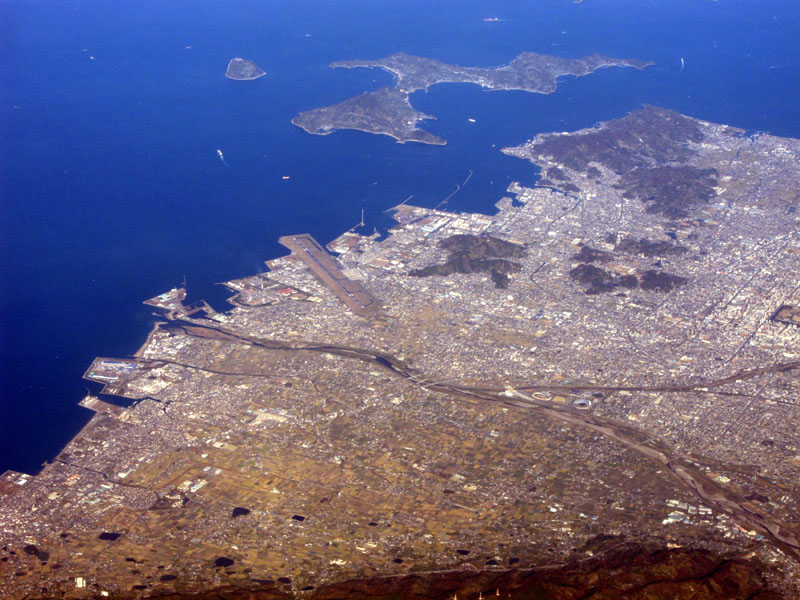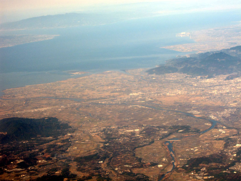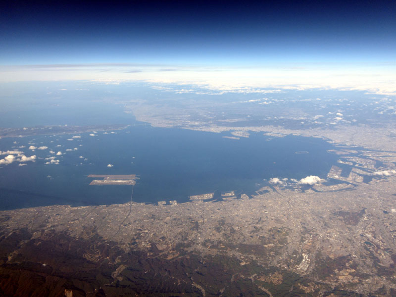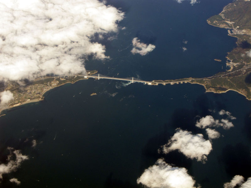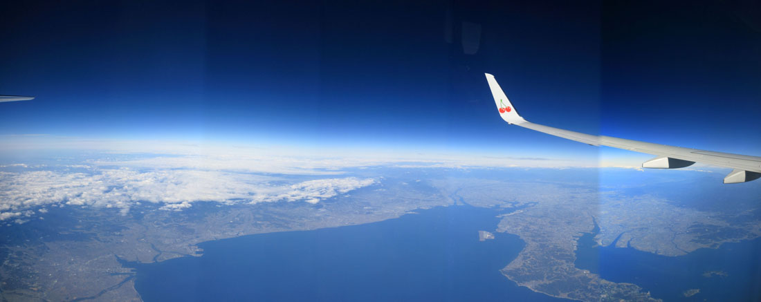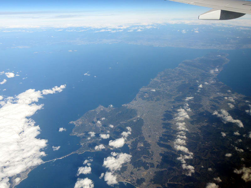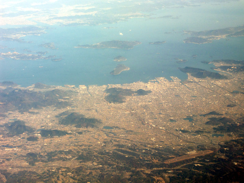 瀬戸内海上空を飛ぶ。