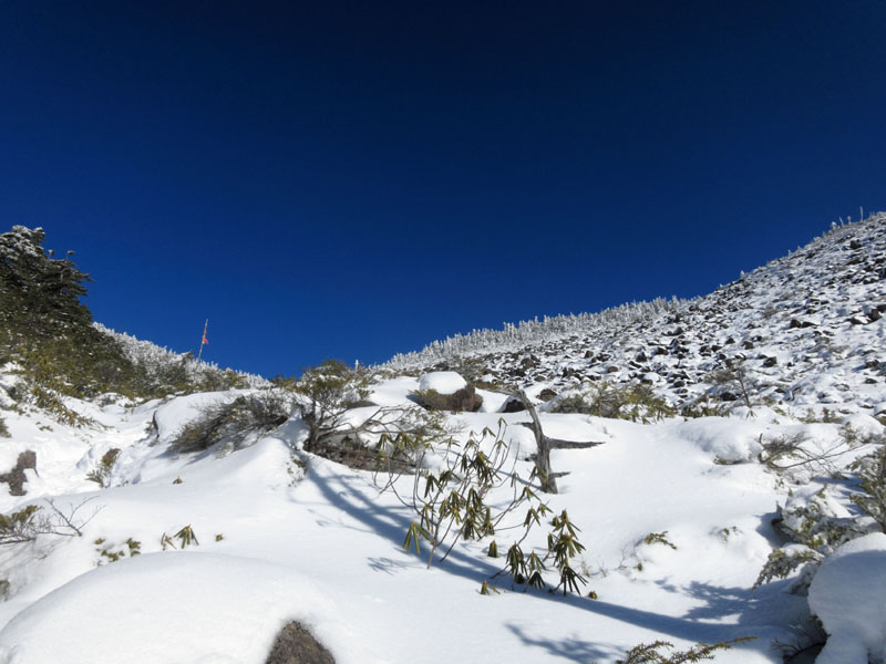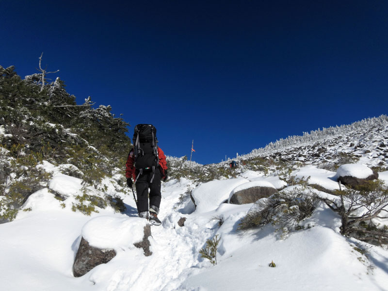 危険箇所も少ない(10本アイゼン+ピッケルでOK)ため、ここに行くことにした。
