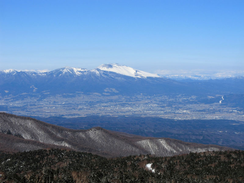 浅間山が白く輝き非常に美しい。