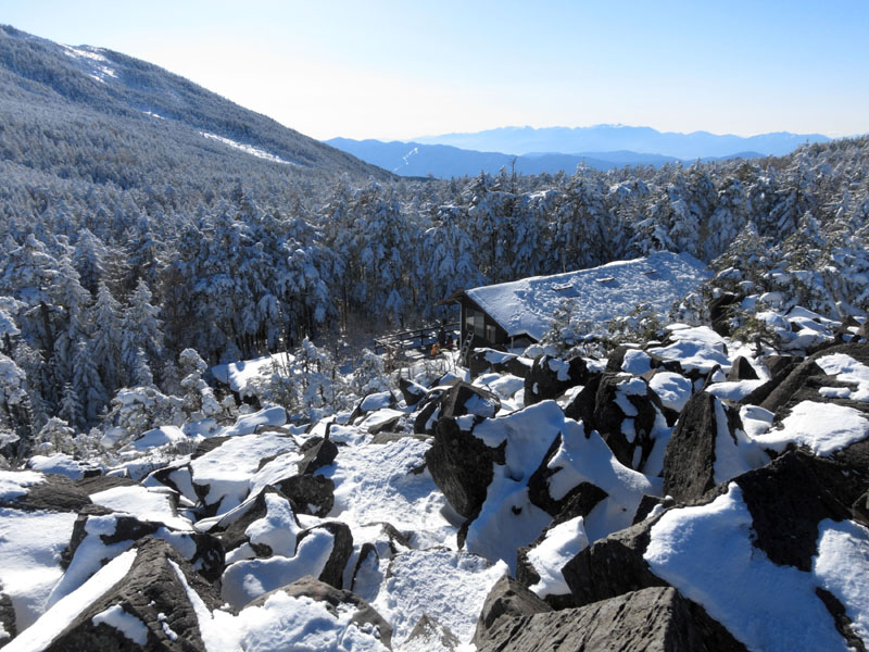 小屋までは麦草峠からキャタピラ車両による物資搬入が可能であり、