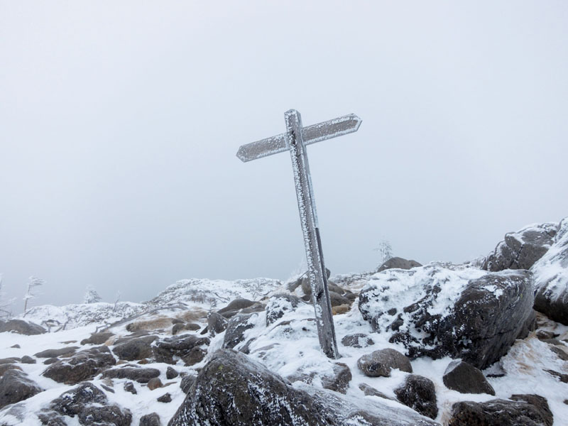 天狗岳を目指すが、森林限界上では猛烈な暴風雪で前進できない。