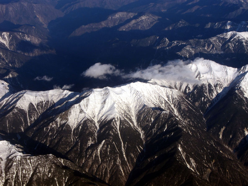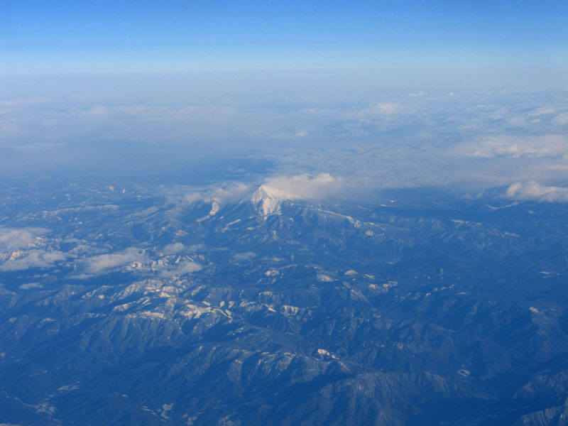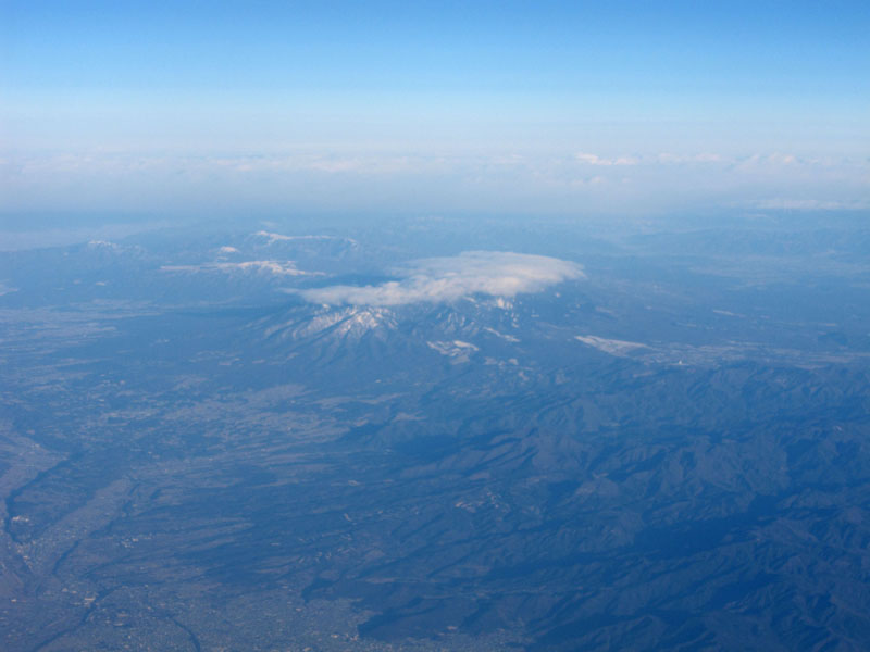 八ヶ岳は冬型が強いせいで頂上部だけに雲が掛かっている。