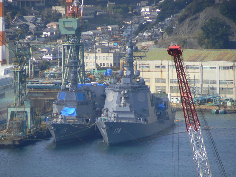 なぜが修理中の護衛艦が三菱重工のドックにとまっている。