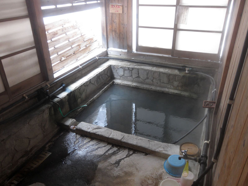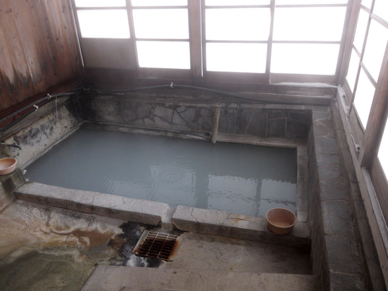 男湯は強烈な硫黄の湯船で、45℃くらいでやや熱いが寒い中入るのは快適。