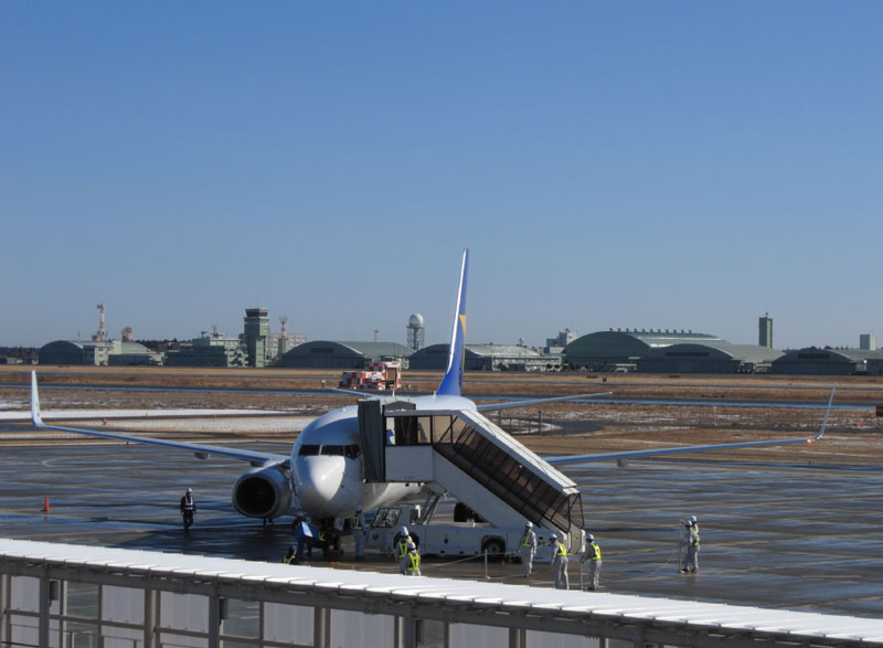 これから乗るSKYMARKの便が長崎から到着し、出発準備を整えている。