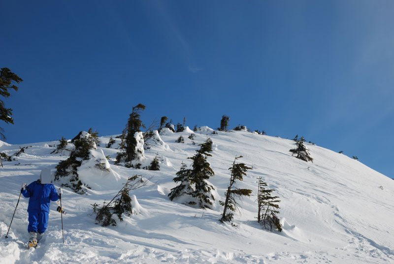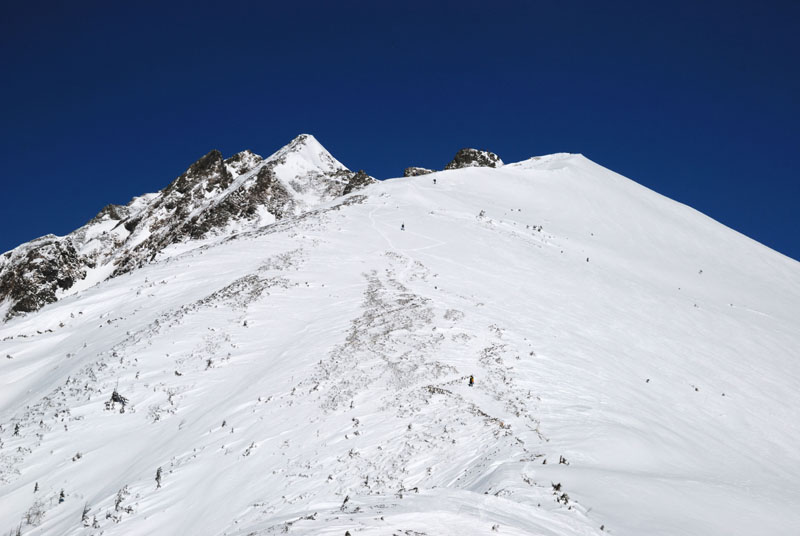 途中の登りは、スノーシューの人もいるのか、ジグザグについている。