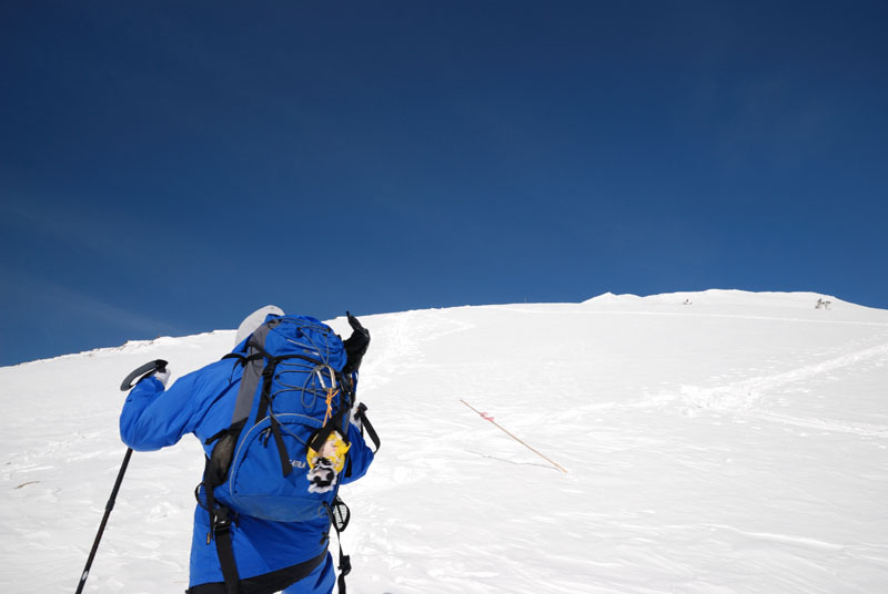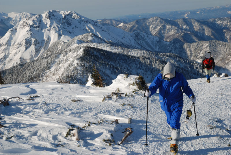 スノーシューだと基本的に急勾配の登り下り(特に下り)はできない。