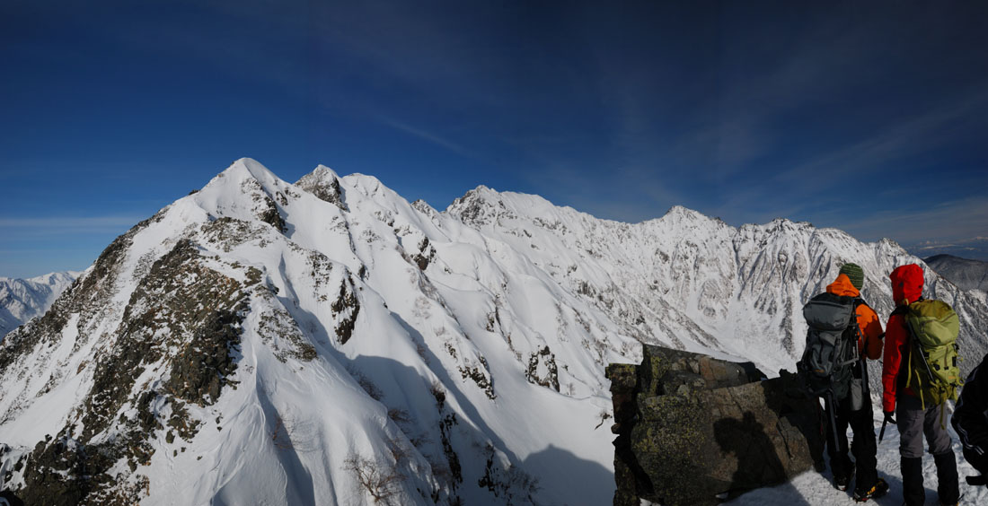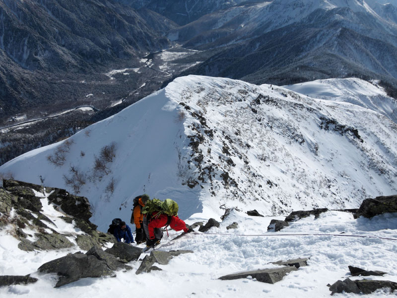 独標直下はかなり急な岩場になっておりロープによる確保が推奨。