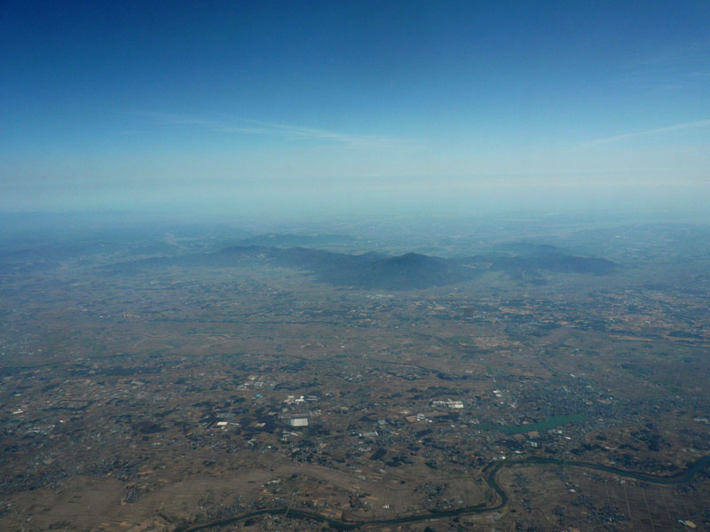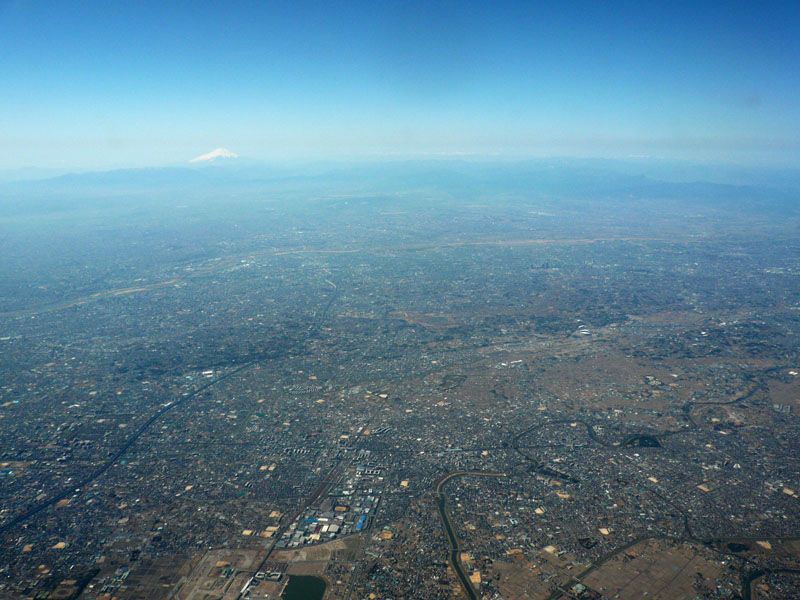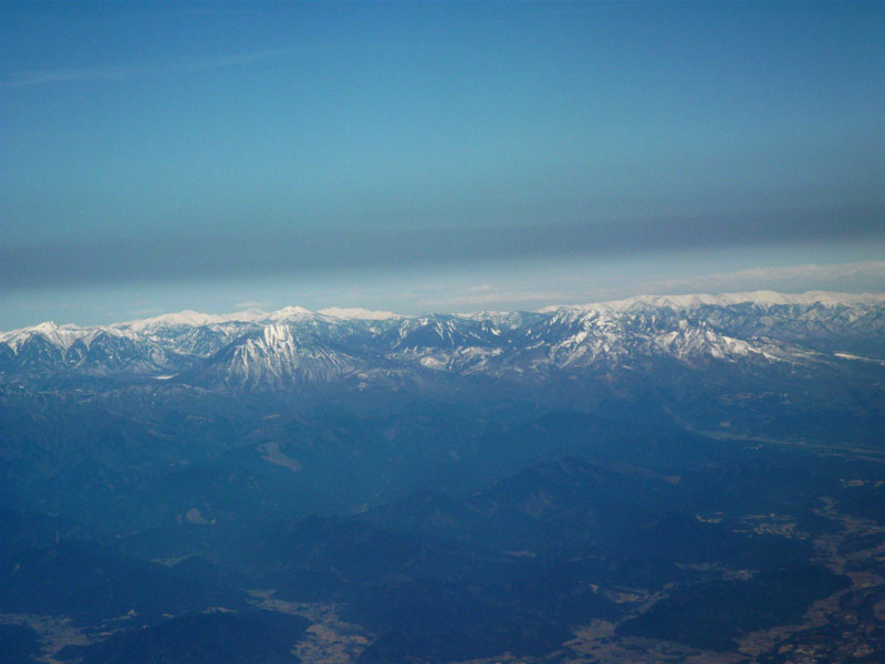 いつでも関東上空からは富士山と南北アルプスが見える。