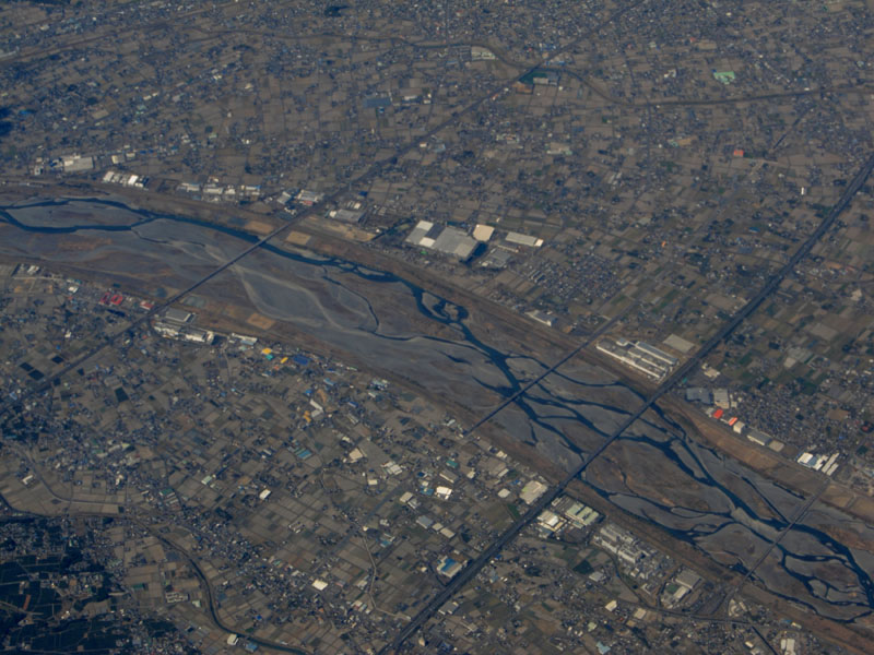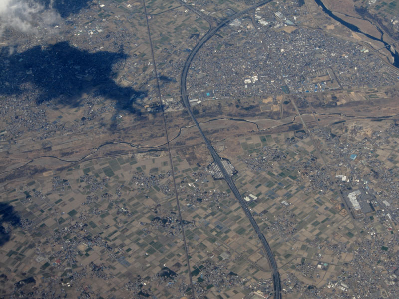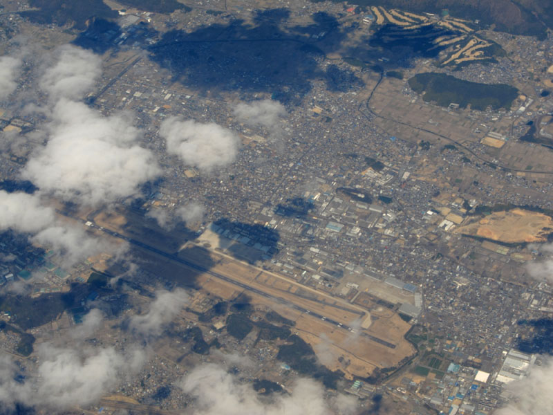 離陸直後と着陸前は空港の標準経路からの推測であるが、