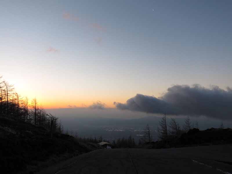 深夜に5合目まで車を走らせ、車中泊する。