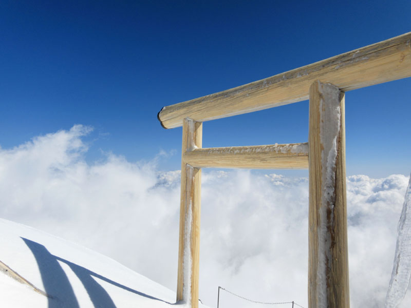 まずは登山口の古御岳神社に参拝し登山の無事を祈る。