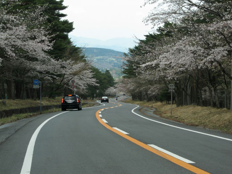 帰りの富士あざみラインは桜が咲いており、なかなかドライブに適する道路。