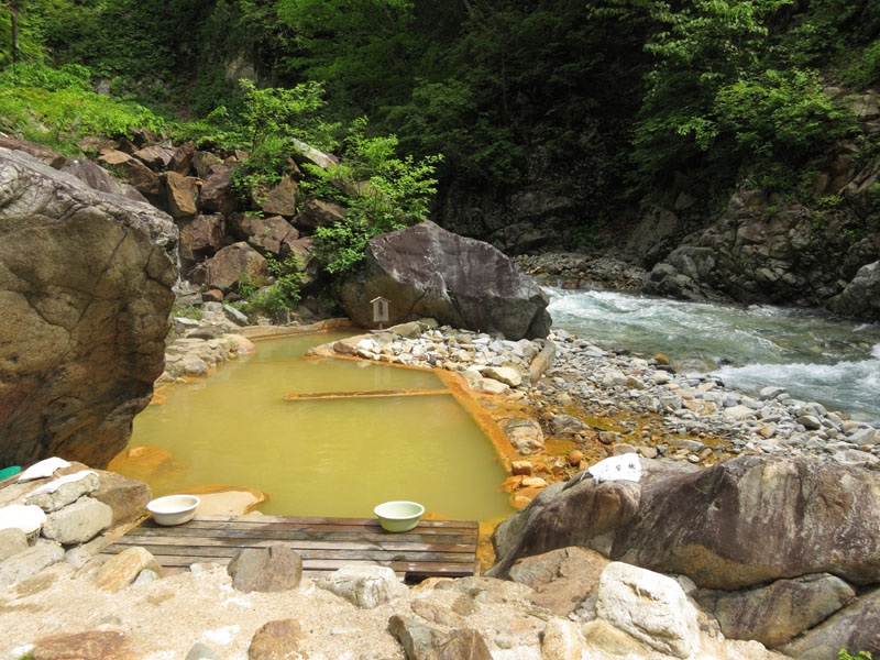 温泉へは徒歩2時間を要し、徒歩でしか辿り着けない秘湯である。