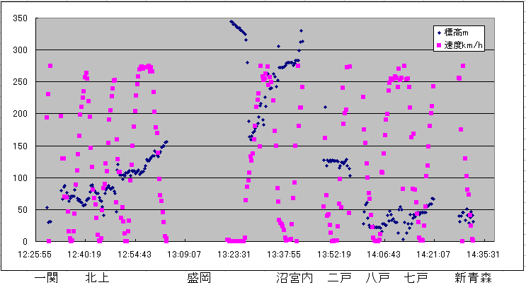 区間が短い北上新花巻間でも250km/h以上出ているのは偉い。