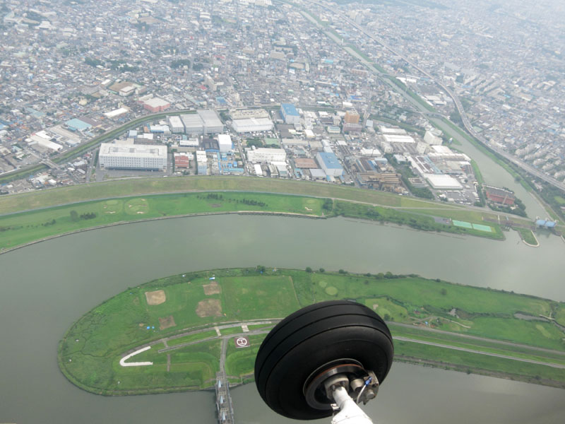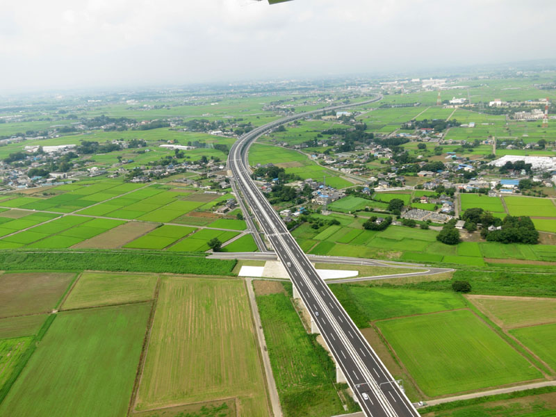 飛行場と並行に飛び、桶川JCT直上で90度旋回する。