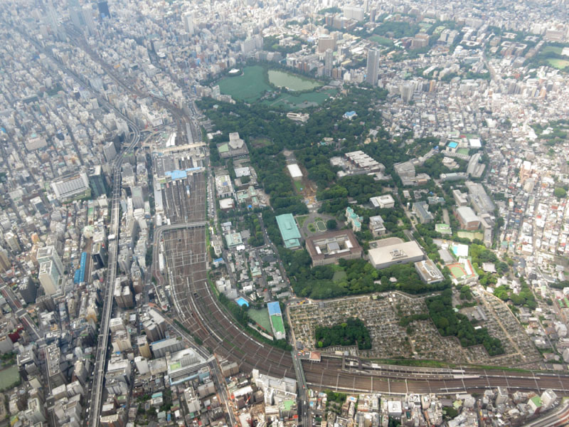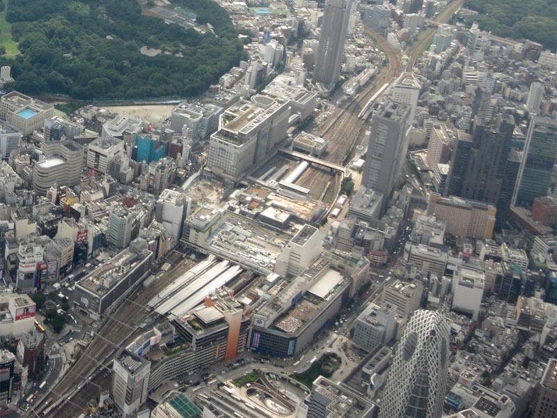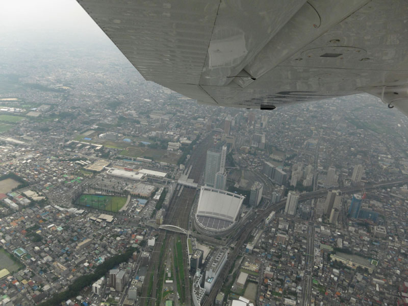 駅を見物するために駅のやや西側を飛行するが、