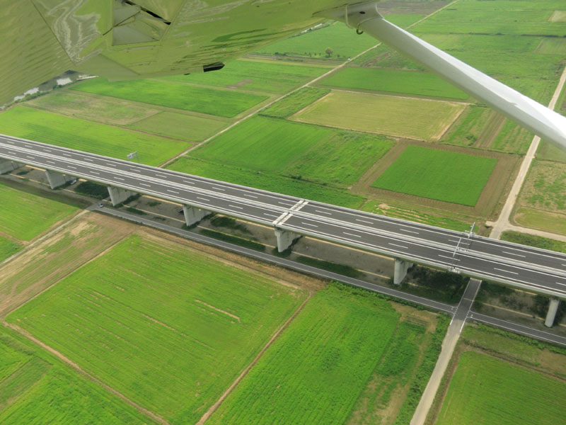 高架の高速道路は上空から見るとめちゃくちゃ目立つな。