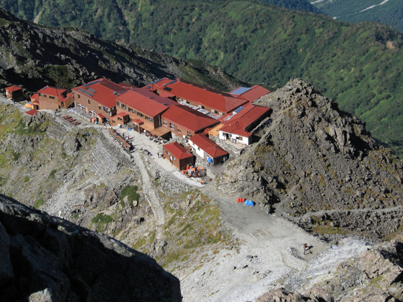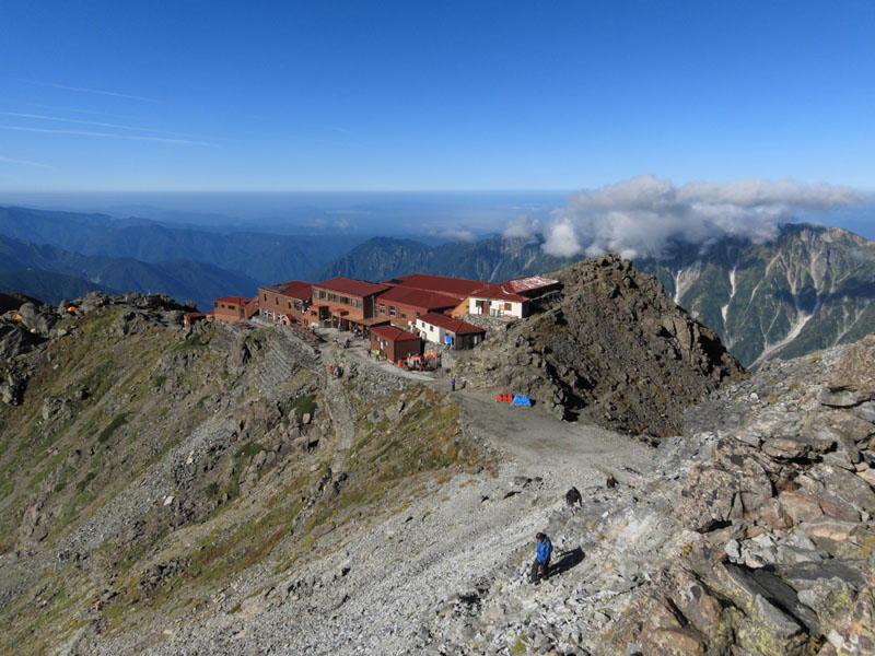 槍ヶ岳山荘は相変わらず凄いところに建っている。