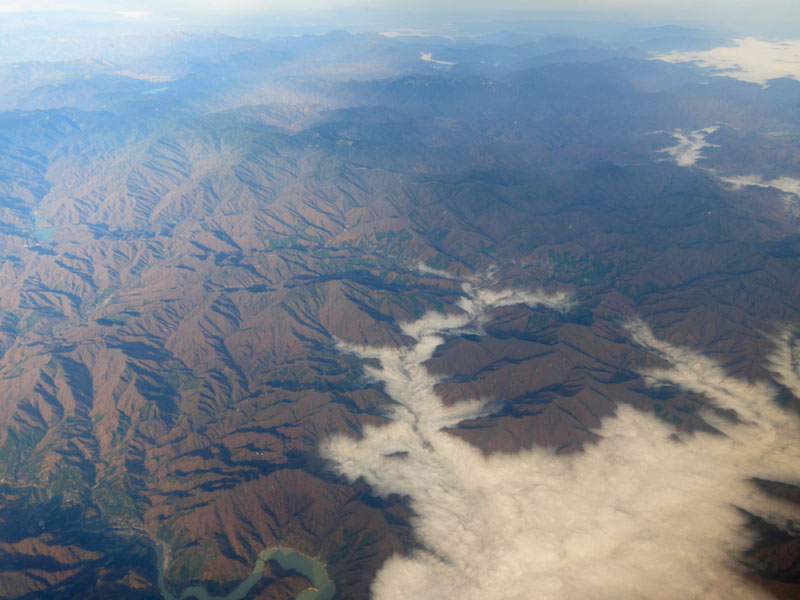飛行高度は7000mと低いので意外とよく地上が確認できる。