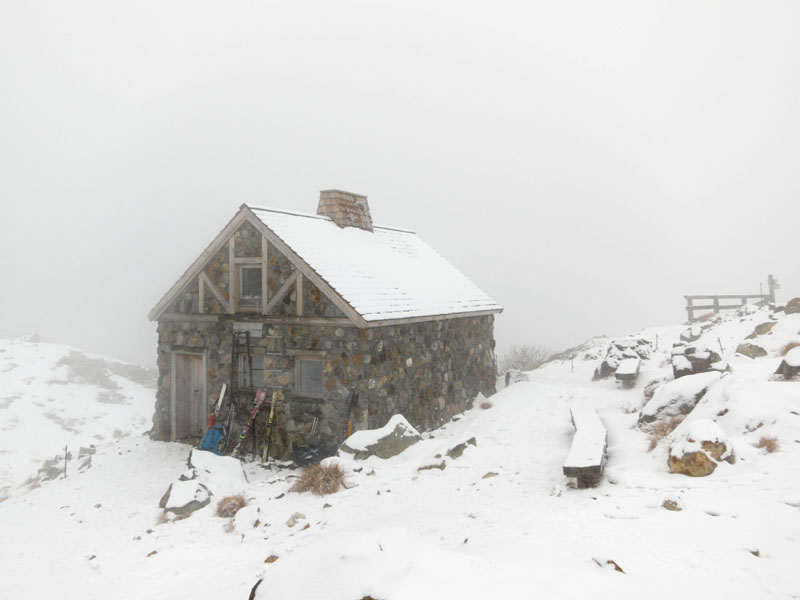 中では大学生と思われる山岳スキーヤーが昼食中だった。