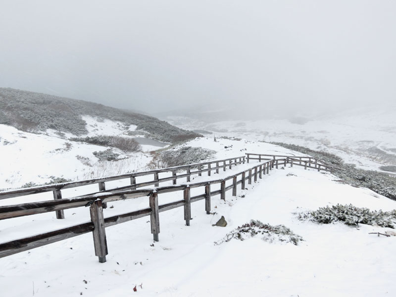 太平洋側にある富士山と異なり、積雪の多い大雪山は雪が降るのは日本一早い。