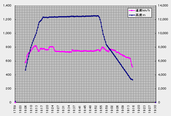 飛ぶに従って気圧がさがっているため、ゆっくりと高度が下がっている。