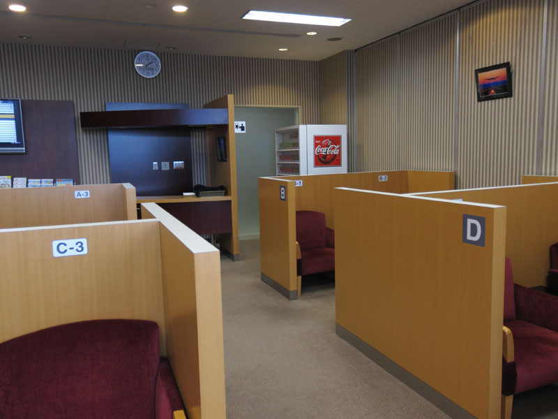 またパソコン用コンセントや飲み物の自動販売機(無料)もあり便利。