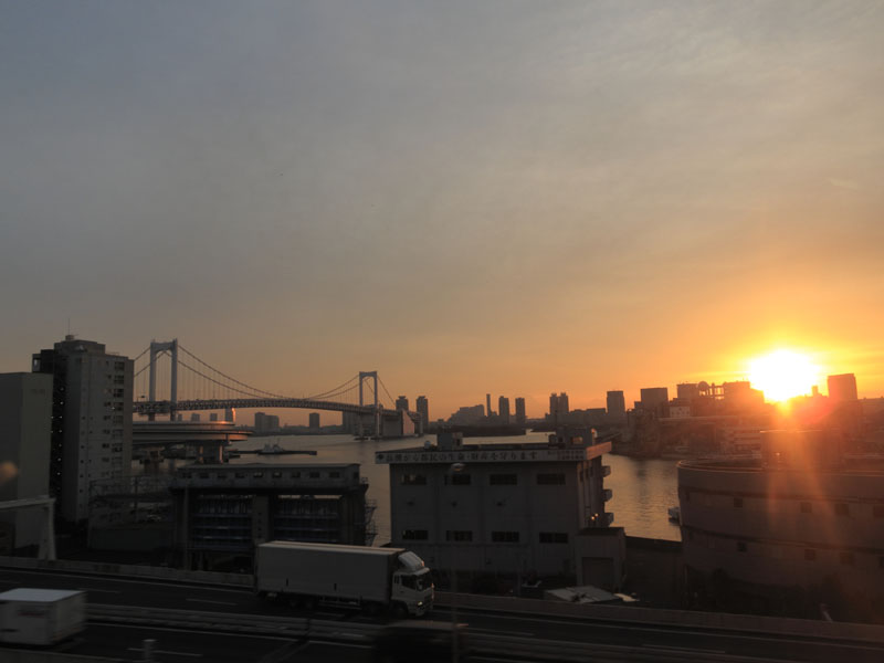 モノレールから見る帝都の朝日が美しい。
