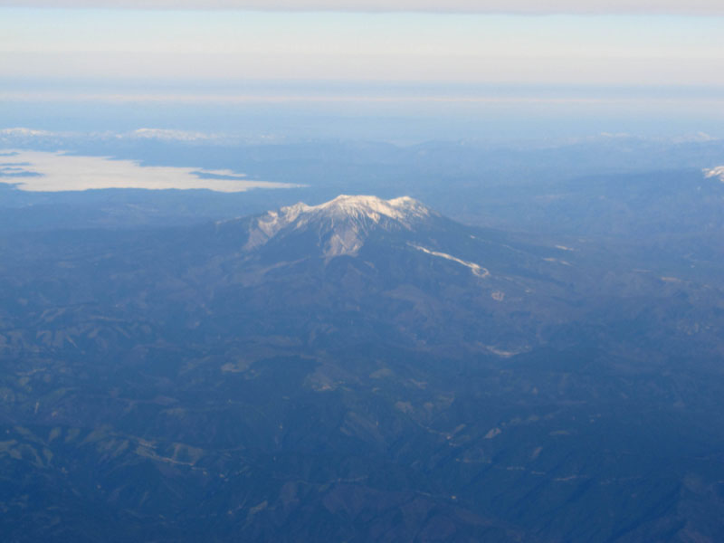 御岳はなぜかスキー場だけが白くなっている。