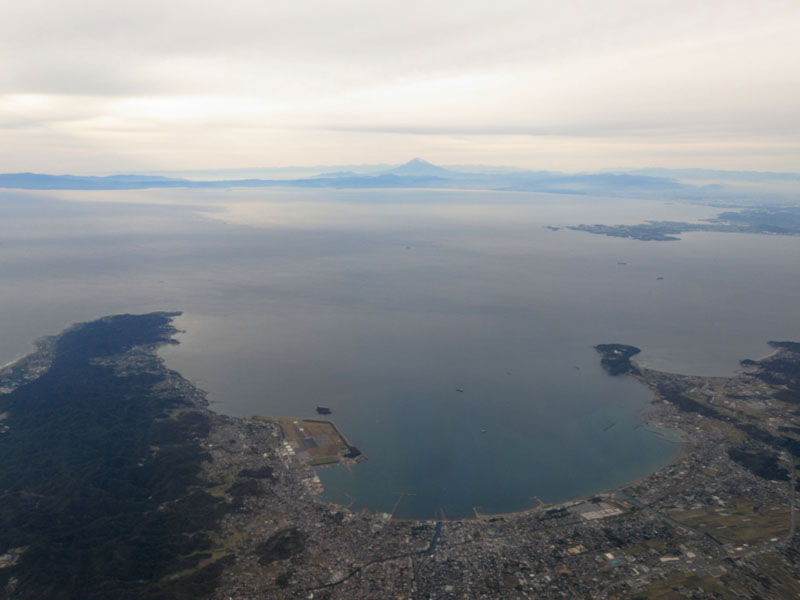 雲から抜け高度を下げるとすでに伊豆大島。