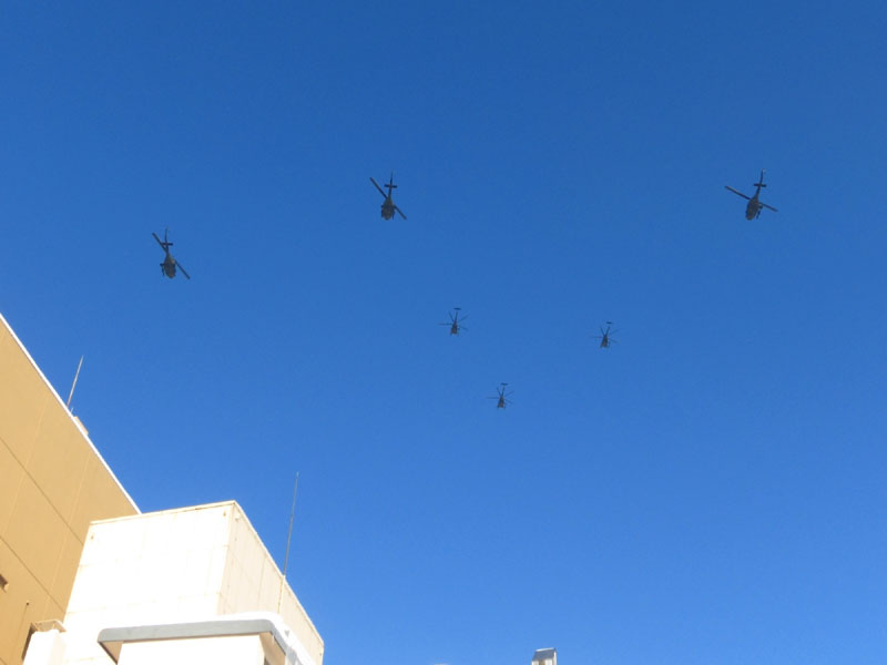 ヘリ6機編隊が通過。
